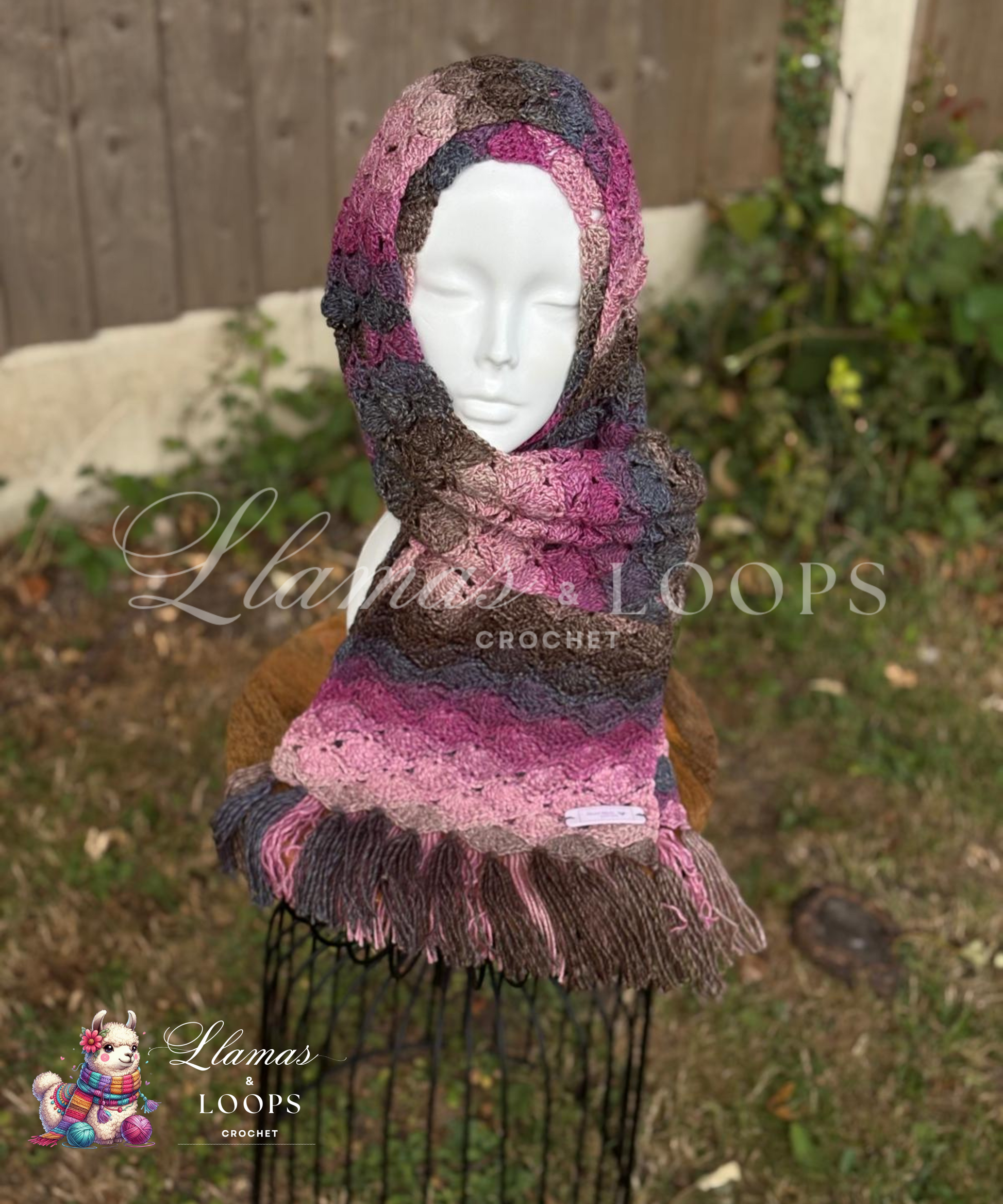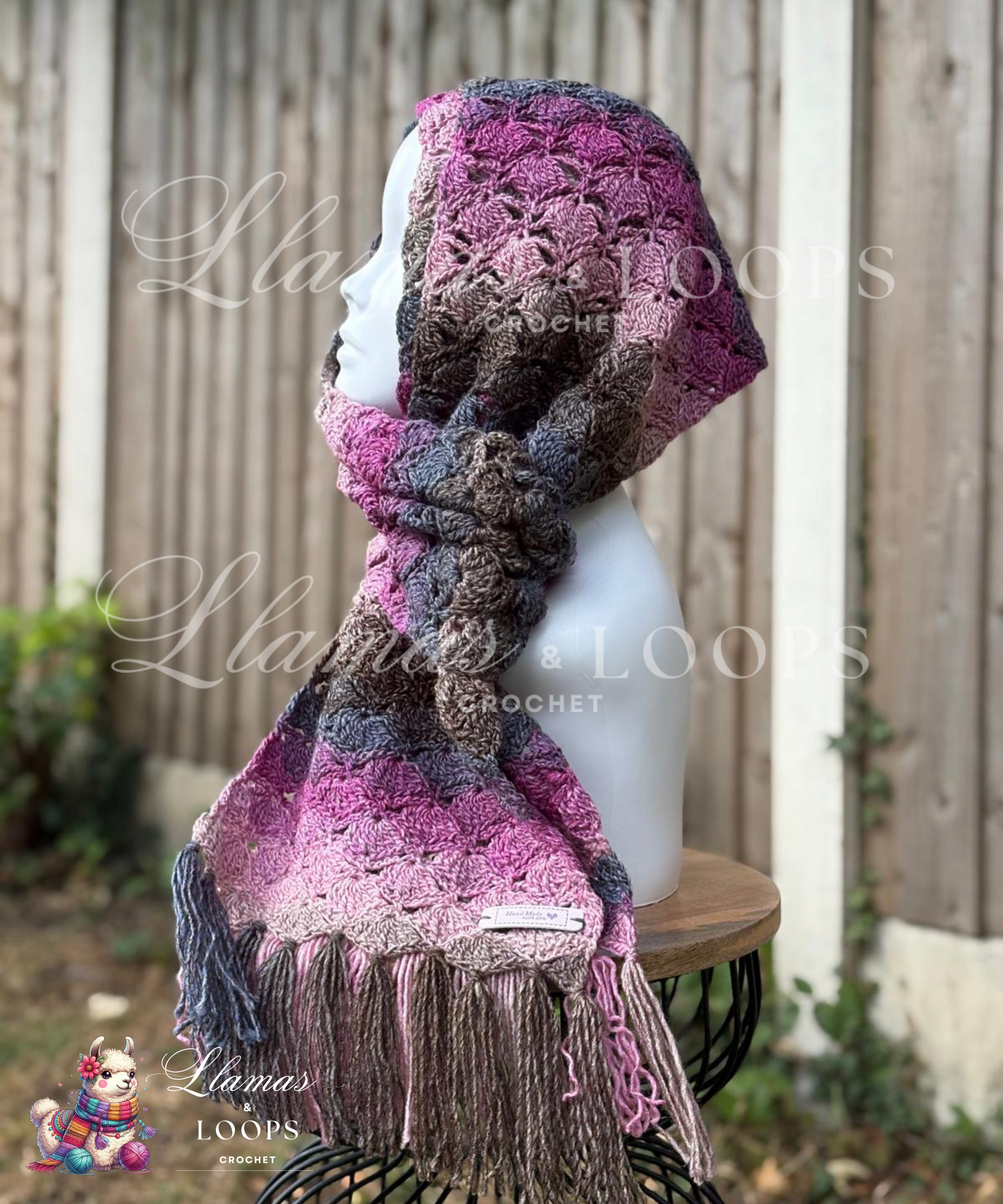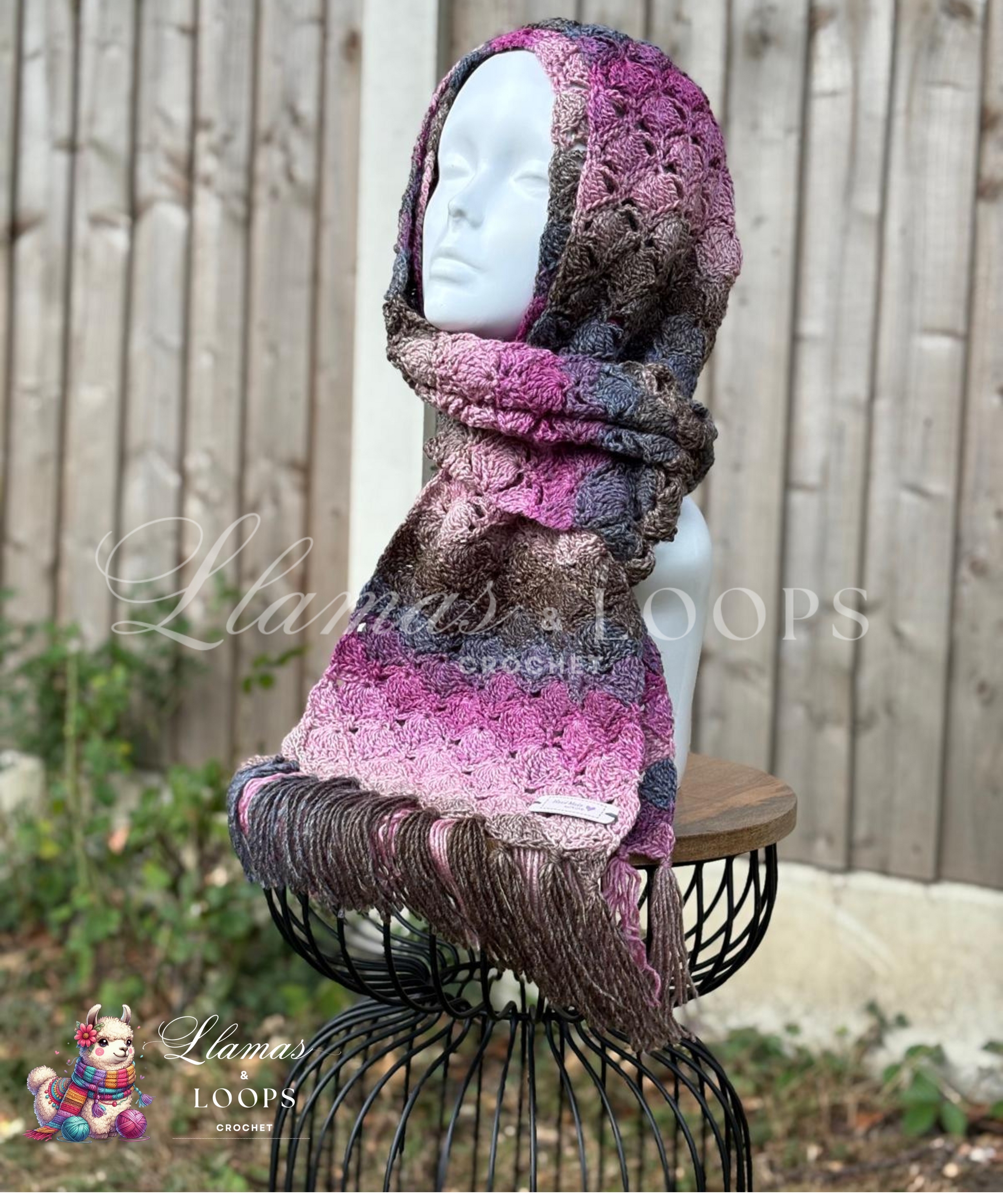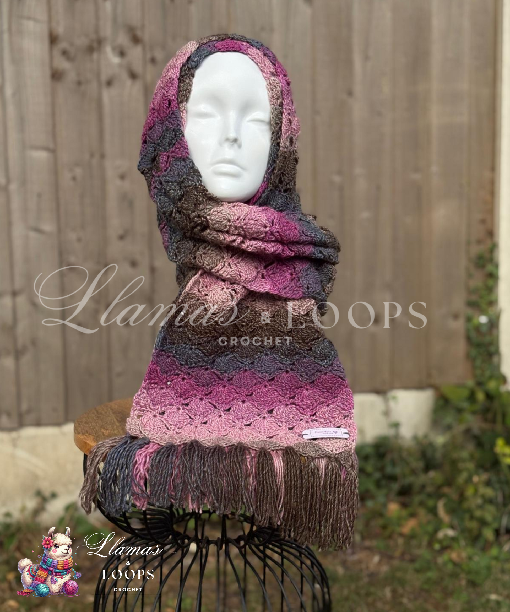 Add a touch of cozy charm to your wardrobe with this beautiful handmade crochet shell stitch scarf from Llamas and Loops. Carefully crafted using soft and durable acrylic yarn, this scarf features a timeless shell stitch pattern that adds lovely texture and warmth.
